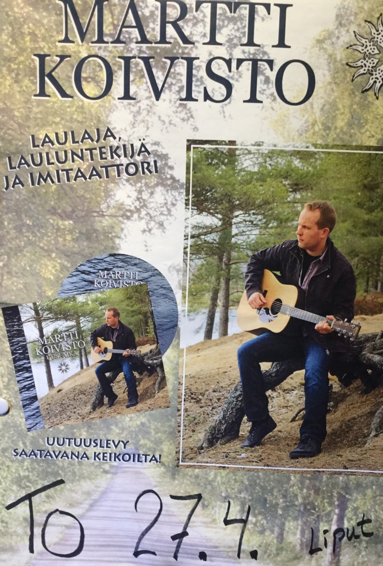 Torstaina 27.4. Koomikko Martti Koivisto. Liput 5€. Tervetuloa! Kirjoittanutkarrinpuomi17.4.2017Kategoria(t):Yleinen Jaa: Click to share on X(Avautuu uudessa ikkunassa) X Jaa Facebookissa(Avautuu uudessa ikkunassa) Facebook Tykkää Lataa...