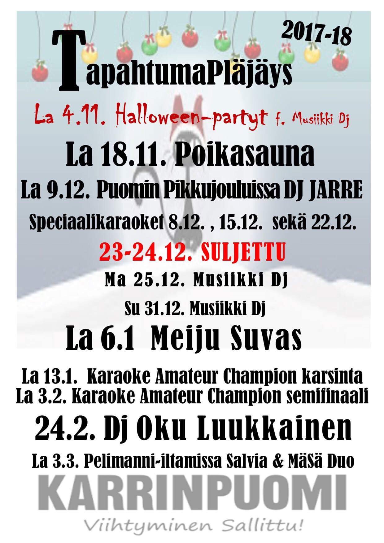 Muutama muutos jo julkaistuun ohjelmistoon! Meijua siiretty päivää aiemmaksi ja Poikasaunaa kattellaan uudelleen kevväämmällä. Remonttihaasteista lisää lähiaikoina. Pysykäähän kuulolla.